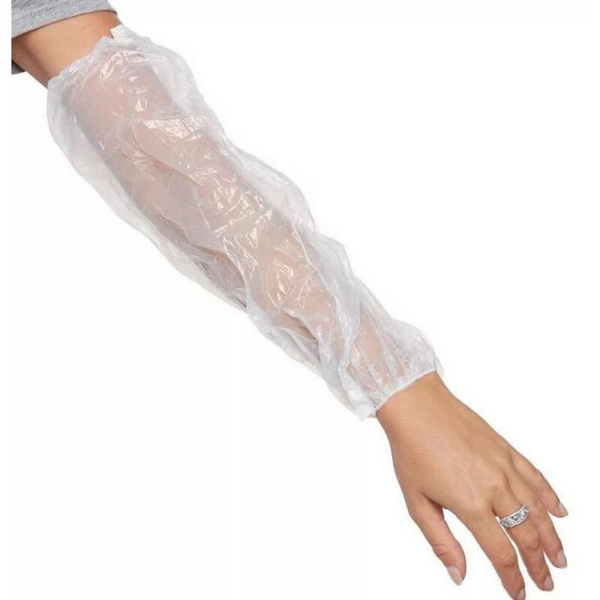 Одноразовые нарукавники из плотного полиэтилена низкого давления (ПНД). Надёжно защищают одежду и кожу рук от влаги и загрязнений. Эластичные фиксаторы на концах обеспечивают плотное прилегание и комфорт при длительном ношении.